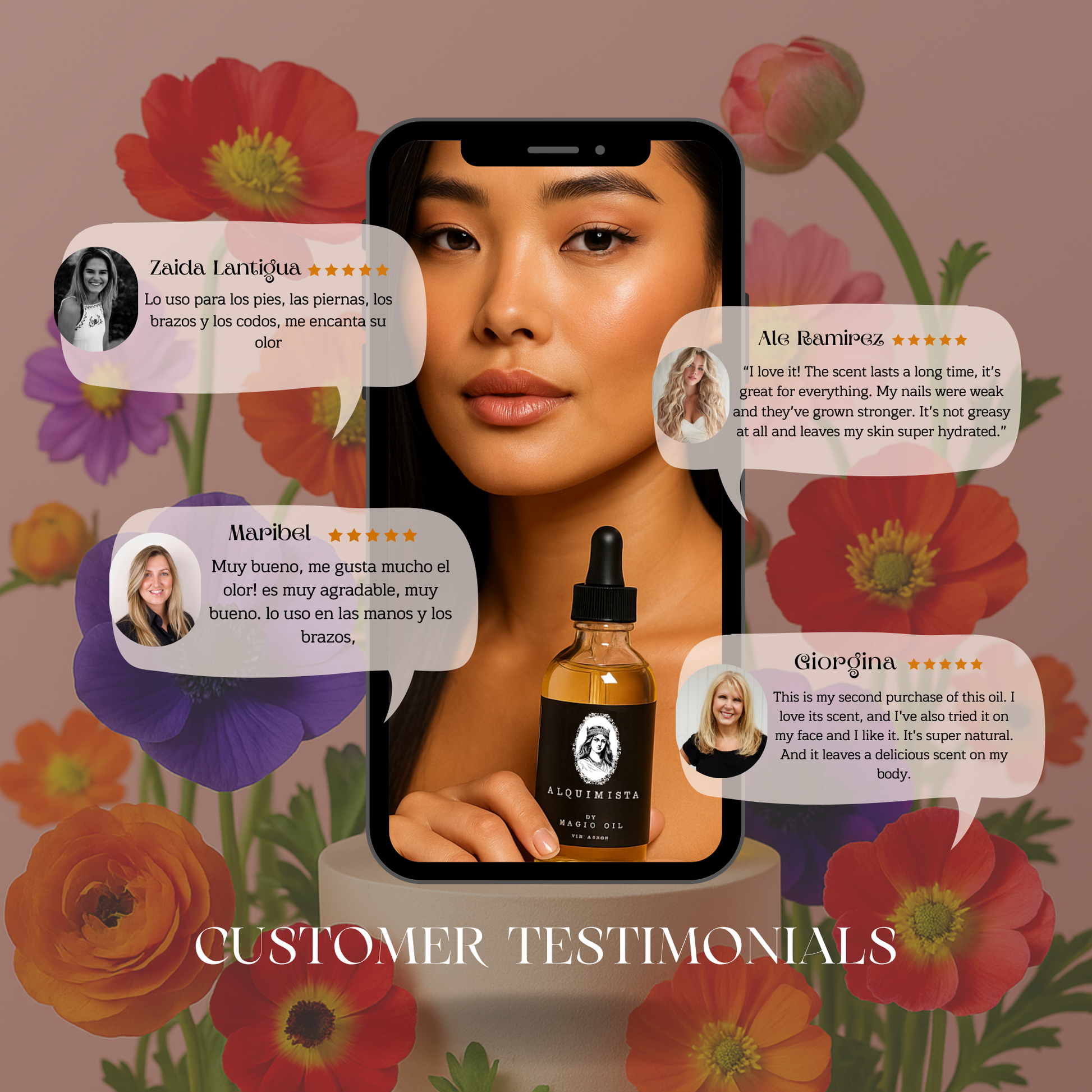 Alquimista Magic Oil No.1Â is a handcrafted, all-natural body oil infused with powerful botanicals like cinnamon and clove. Deeply hydrates, softens dry skin, Enhances circulation, Perfect for body massage, post-shaving or waxing Gently, removes makeup and nourishes eyelashes, Great for tattoo and cuticle. 100% plant-based magic